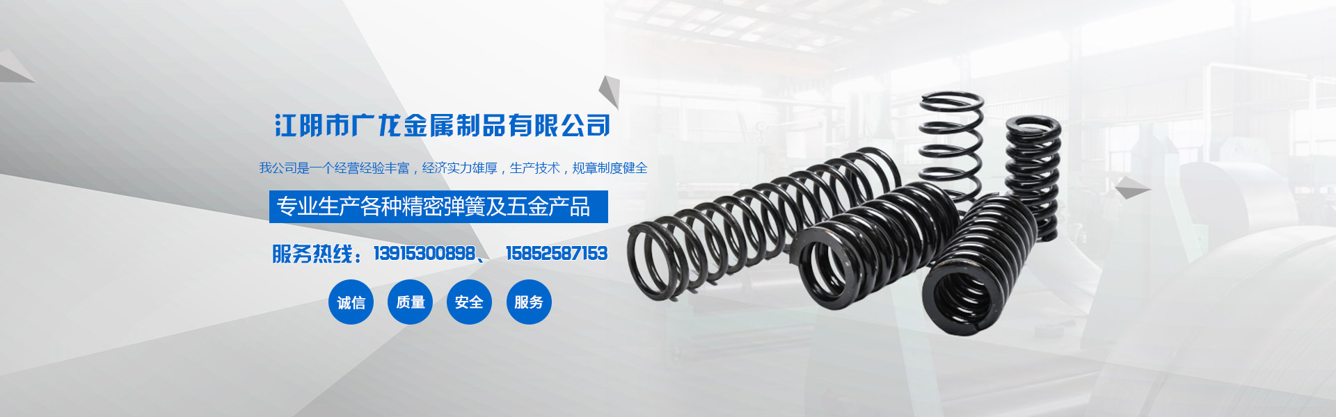 江陰市廣龍金屬制品有限公司,位于風(fēng)景美麗的江陰市。我公司是一個(gè)經(jīng)營(yíng)經(jīng)驗(yàn)豐富,經(jīng)濟(jì)實(shí)力雄厚,生產(chǎn)技術(shù),規(guī)章制度健全,服務(wù)多元化,產(chǎn)品多元化,產(chǎn)品質(zhì)量高的金屬制品公司。主營(yíng)產(chǎn)品:電動(dòng)工具彈簧、各類(lèi)化妝品噴霧壓簧、各類(lèi)異形彈簧、化妝品瓶蓋配重彈簧、精密儀器壓簧、卡簧、拉簧、扭簧、塔簧、油封彈簧、座椅掛鉤等彈簧兼容行業(yè)多的綜合性公司,如果您對(duì)我公司的產(chǎn)品服務(wù)感興趣,請(qǐng)?jiān)诰€(xiàn)留言或者來(lái)電咨詢(xún),聯(lián)系電話(huà):13915300898!
